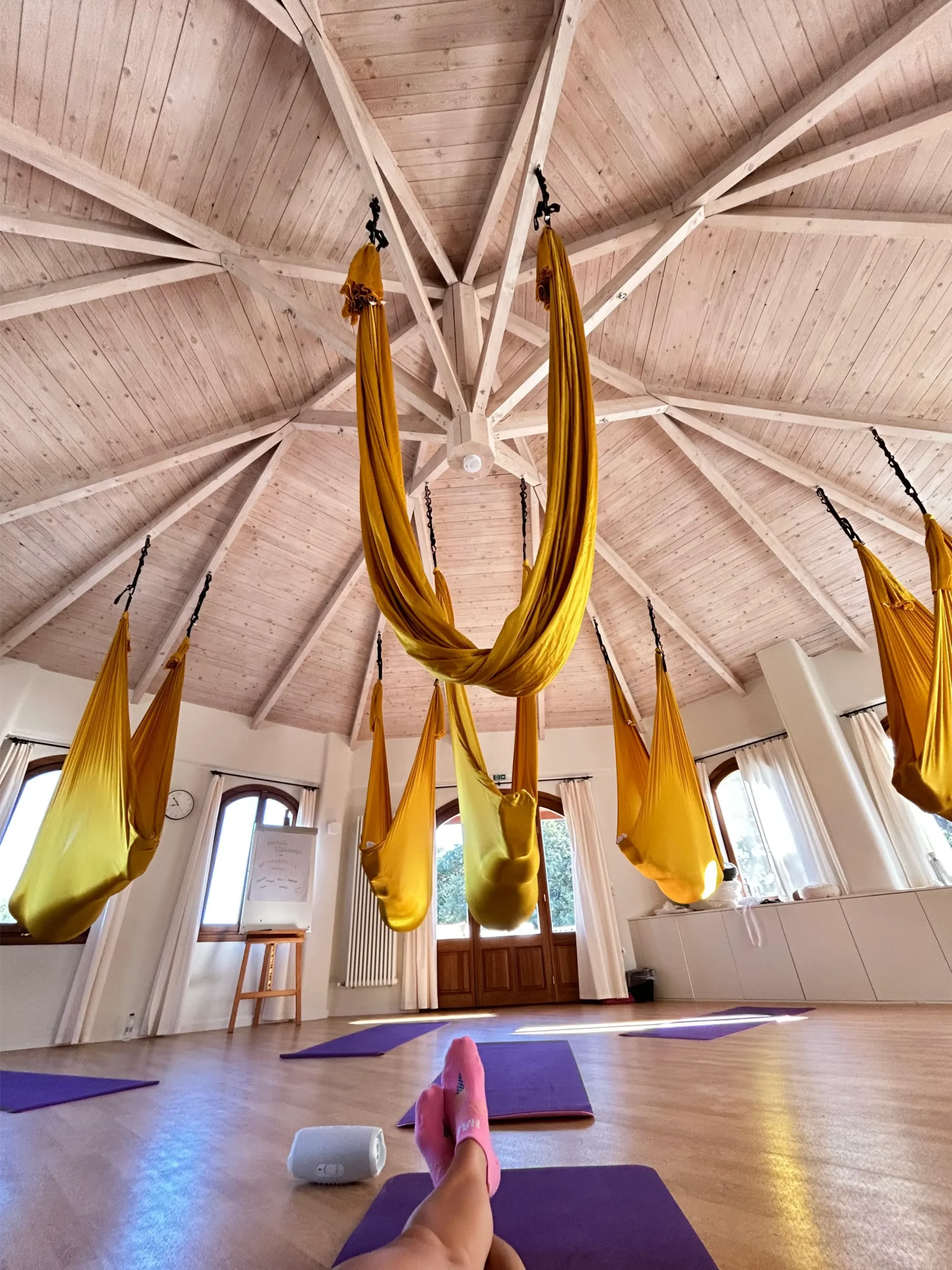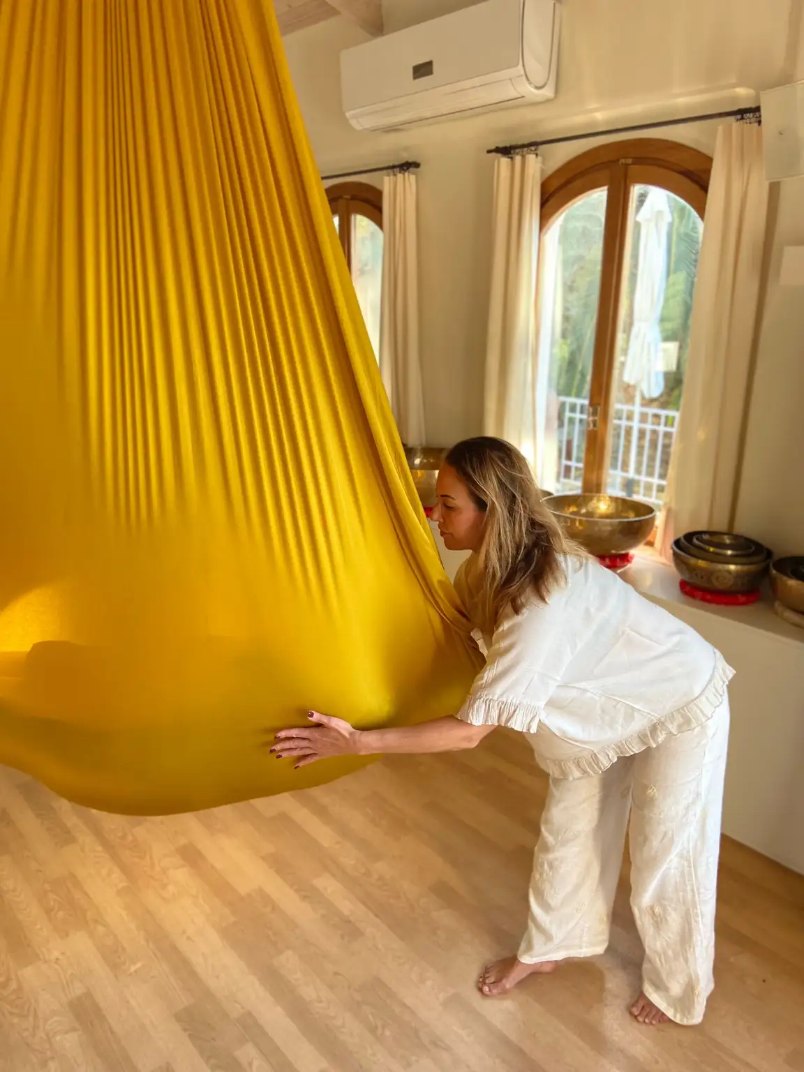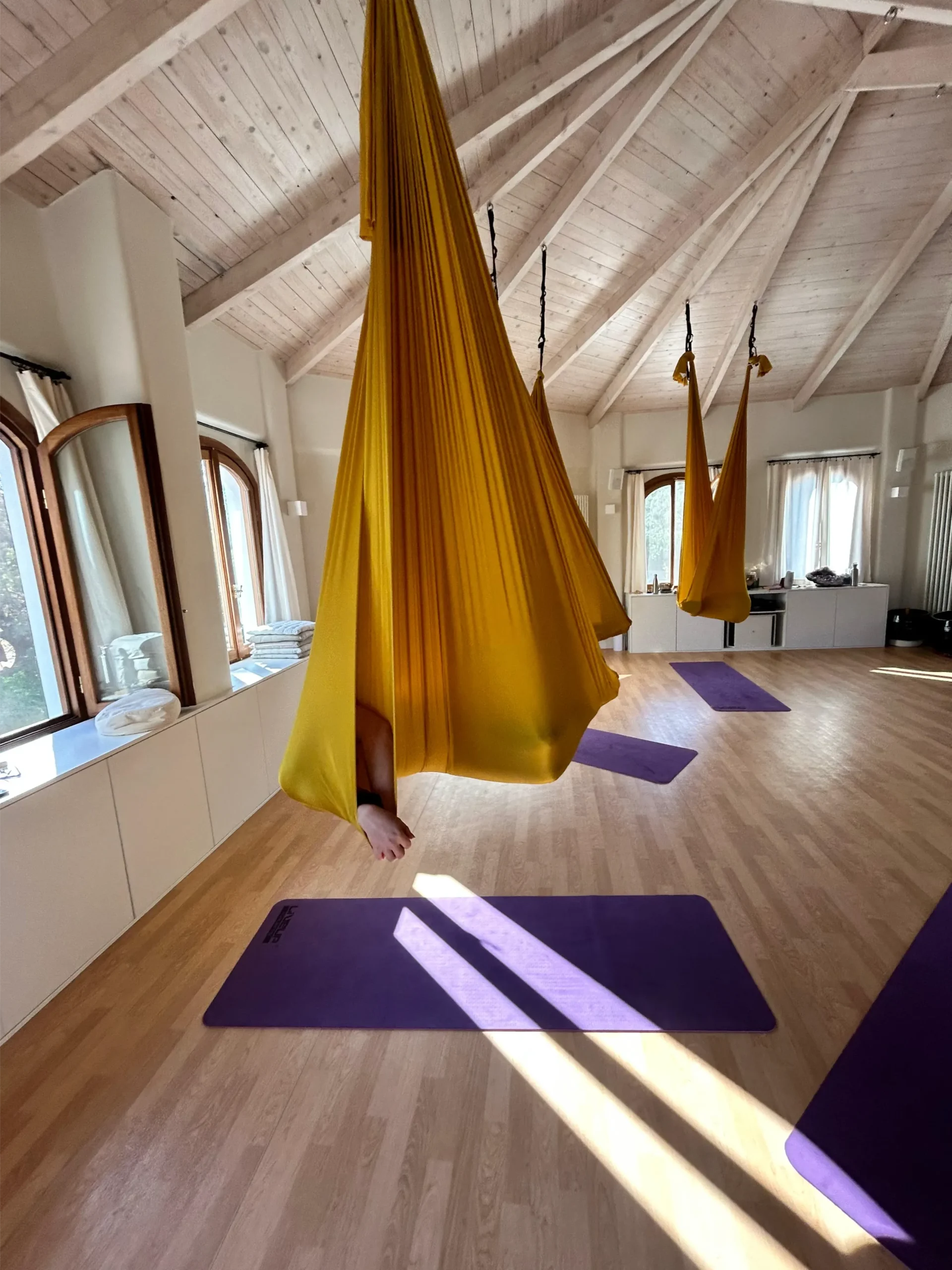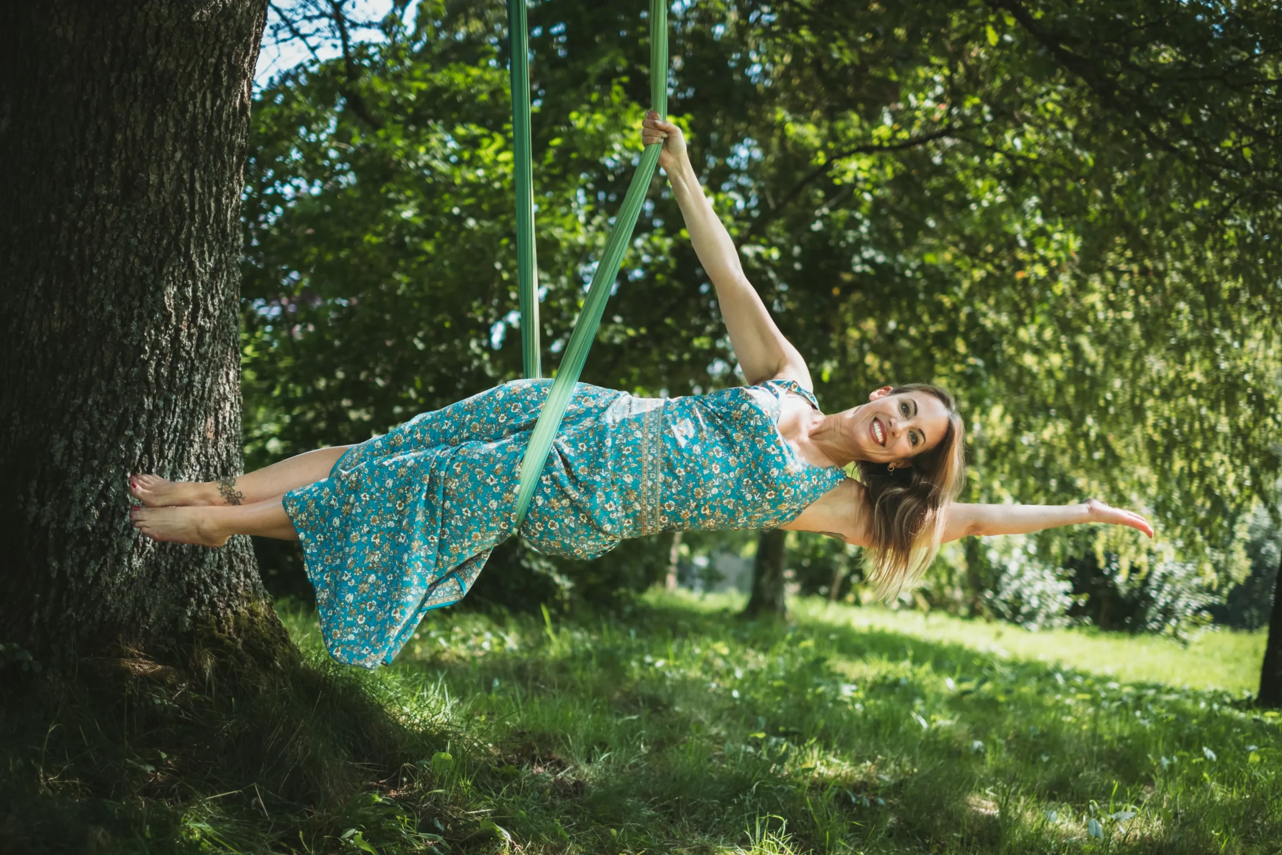 „Die Aerial Yoga Stunde hat mir unglaublich gutgetan. Ich war den ganzen Tag über entspannt und voller innerem Frieden. Heute habe ich Muskelkater – aber ich wäre sofort wieder dabei.“